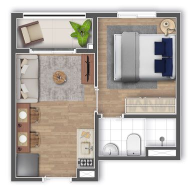 Planta inteligente com varanda, trazendo mais ventilação, iluminação natural e conforto no dia a dia.