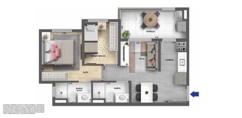 • 2 dormitórios com suíte