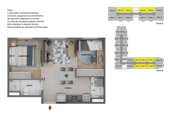 📐 Apartamento 38m² — 2 dormitórios com terraço