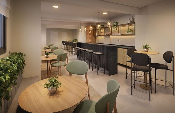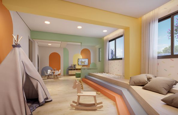 Piscina adulto e infantil • Fitness • Coworking • Sport bar • Brinquedoteca • Playground • Pet place • Miniquadra • Salão de festas • Churrasqueira • Espaço beleza • Lavanderia • Easy market • Lounge convivência