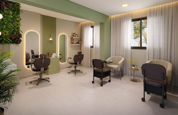 Piscina adulto e infantil • Fitness • Coworking • Sport bar • Brinquedoteca • Playground • Pet place • Miniquadra • Salão de festas • Churrasqueira • Espaço beleza • Lavanderia • Easy market • Lounge convivência