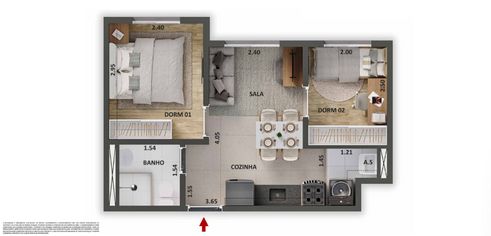 • 2 dormitórios