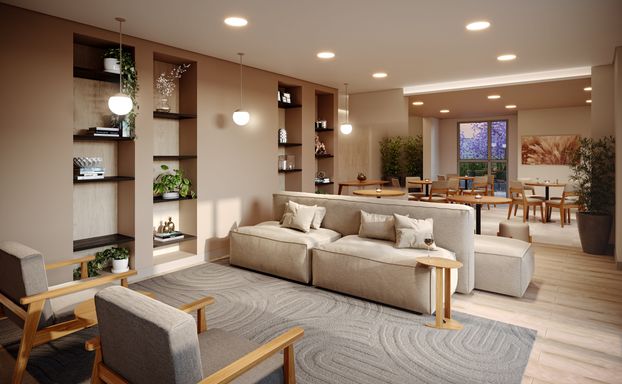 As unidades contam com bancadas em granito, persianas de enrolar, infraestrutura para ar-condicionado e piso laminado nos dormitórios, proporcionando mais qualidade e praticidade no dia a dia.