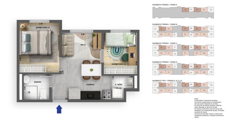 A planta de 32m² com 2 dormitórios oferece ambientes bem distribuídos, ideal para quem busca funcionalidade e melhor aproveitamento interno em uma localização estratégica para morar ou investir.