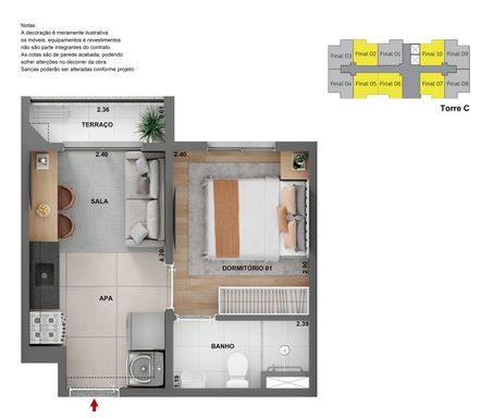 A planta de 34m² com 2 dormitórios foi pensada para oferecer ambientes funcionais e bem distribuídos, ideal para quem busca o primeiro imóvel em uma localização com excelente infraestrutura urbana.