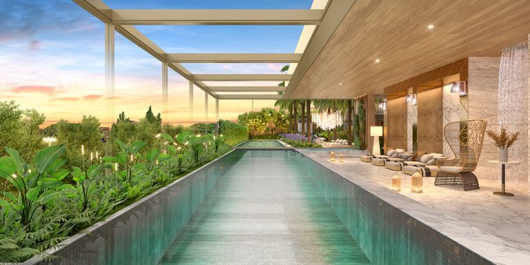 O lazer é digno de um resort urbano. Piscina externa com solarium, piscina infantil e piscina coberta aquecida convivem em harmonia com o SPA com jacuzzi e sauna. Para receber, o Party Lounge e o sofisticado The Pool House garantem momentos únicos. Quem busca esporte e bem-estar conta com academia equipada, quadra de tênis, quadra de beach tênis e espaços de lazer para crianças, como brinquedoteca e playground.