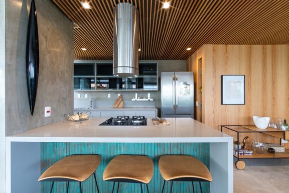 A varanda gourmet com churrasqueira é o coração do apartamento — ideal para reunir amigos e família, enquanto a cozinha gourmet e a sala ampla criam um ambiente integrado, moderno e acolhedor.