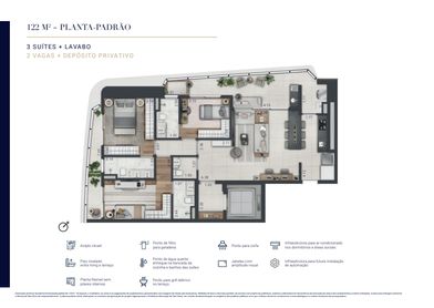 Os apartamentos de 129m² oferecem amplitude, conforto e sofisticação em harmonia perfeita. São 3 dormitórios, todos suítes, com 2 banheiros, 1 lavabo, 2 vagas de garagem, além de uma varanda gourmet com churrasqueira, cozinha moderna e closet — um espaço pensado para quem busca qualidade de vida sem abrir mão do luxo.