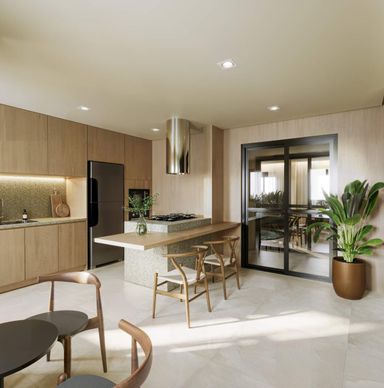 São 3 dormitórios e 2 banheiros, ambientes integrados com sala de jantar e cozinha aberta, além de terraço, infraestrutura para ar-condicionado e espaço para closet — um lar pensado para quem valoriza design, conforto e praticidade no dia a dia.