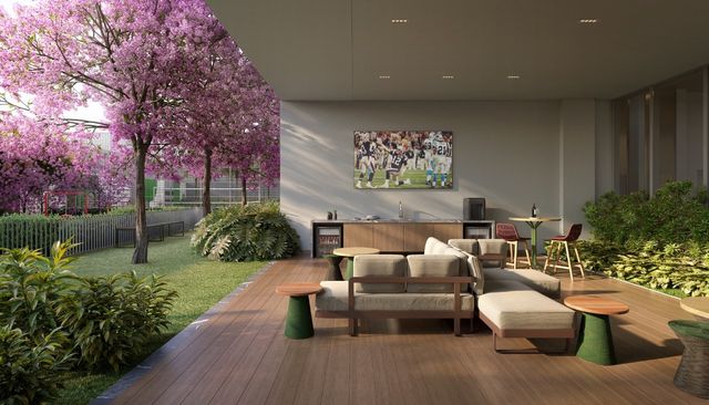 A área de lazer do empreendimento reúne ambientes planejados para diversas rotinas, desde momentos tranquilos até atividades esportivas. Entre os destaques estão a piscina, spa, sauna, espaço zen, sala de massagem, solarium, quadra de tênis, quadra infantil, quadra de beach tênis, playground, sala de jogos, áreas gourmet, bar, lounge, salão de festas e um lobby elegante que reforça a proposta de exclusividade. Cada espaço foi pensado para entregar uma experiência completa de bem-estar dentro do próprio condomínio.