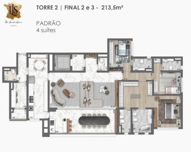 O Île Saint Louis redefine o conceito de alto padrão com apartamentos de 213m², criados para quem busca sofisticação, conforto e exclusividade. São 5 dormitórios, sendo 4 suítes amplas, 2 vagas de garagem, hall privativo, infraestrutura completa para ar-condicionado e uma varanda gourmet com preparação para churrasqueira, ideal para receber com elegância e viver momentos únicos em família.