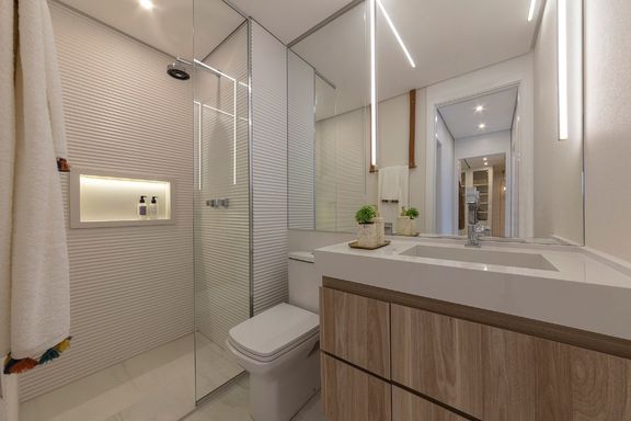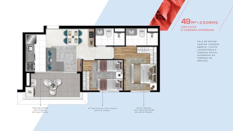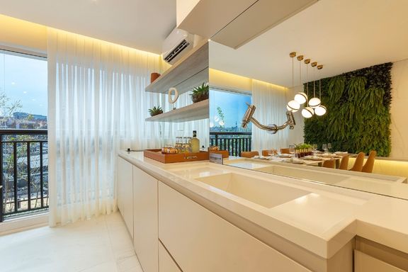 Com 49m² muito bem aproveitados, este apartamento oferece 1 dormitório, 1 banheiro, lavabo, ambientes integrados, área de serviço, home office, infraestrutura para ar-condicionado e uma charmosa varanda gourmet — ideal para relaxar ou receber com estilo.