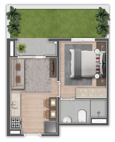 📐 Apartamento de 1 dormitório com Garden (quintal)