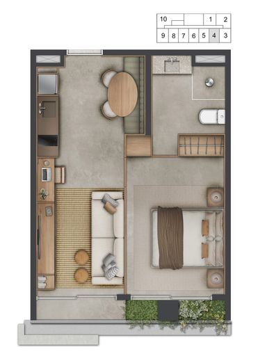 Com 1 dormitório, 1 banheiro, varanda com jardim privativo, lavabo, closet e infraestrutura para ar-condicionado, este é o espaço ideal para quem deseja unir praticidade, elegância e o prazer de morar no coração do Itaim.