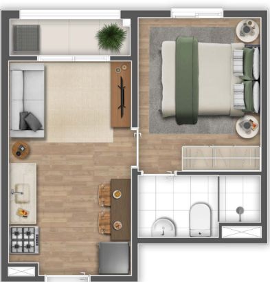 📐 Apartamento de 1 dormitório com varanda — compacto e funcional