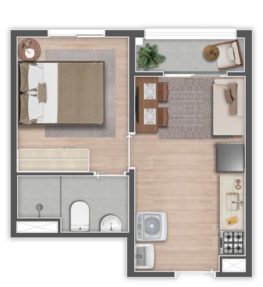 📐 Apartamento de 1 dormitório com varanda