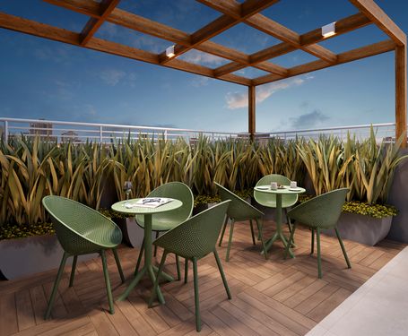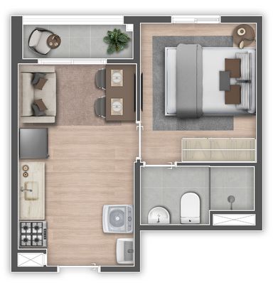 Planta funcional com ambientes integrados e varanda, trazendo mais ventilação e conforto no dia a dia.