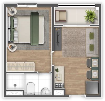 📐 Apartamento de 1 Dormitório com varanda — compacto e funcional