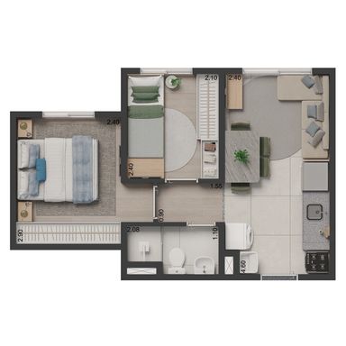 O apartamento possui 32m² muito bem planejados, trazendo 2 dormitórios, ambientes integrados que ampliam a sensação de espaço, infraestrutura para ar-condicionado, preparação para máquina lava e seca e um closet que oferece elegância e organização. Cada detalhe foi pensado para aproveitar cada centímetro e proporcionar uma rotina leve, prática e moderna. O projeto não inclui vaga, o que torna o investimento ainda mais acessível e perfeito para quem prioriza mobilidade urbana.