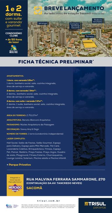 Com entrega prevista para maio de 2027, o Elev Park Sacomã se apresenta como uma oportunidade única para quem quer investir em um projeto moderno, completo e estrategicamente localizado. Seja para morar ou investir, você terá a combinação perfeita entre bom gosto, funcionalidade e uma estrutura de lazer que atende todos os estilos de vida.