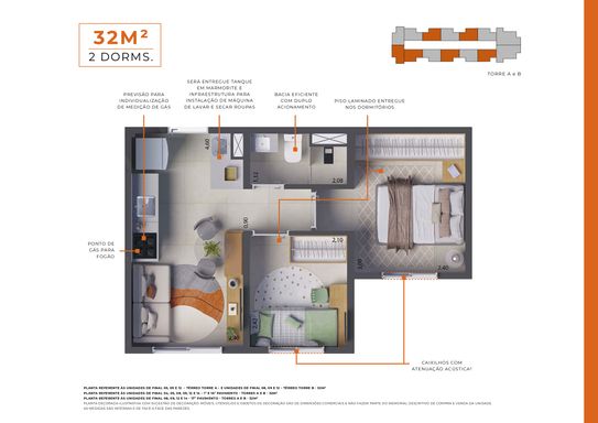 • 2 dormitórios