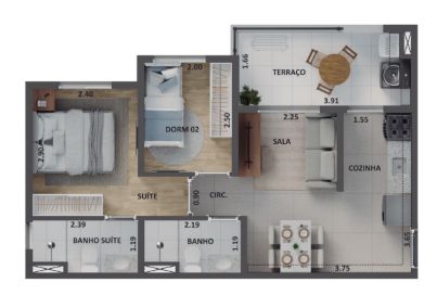 • 2 dormitórios com suíte