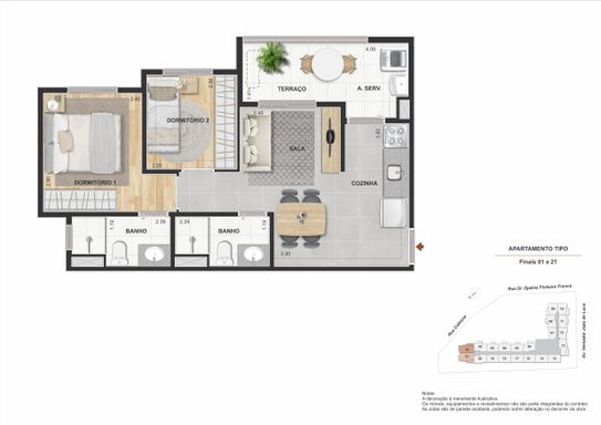 • 2 dormitórios com suíte