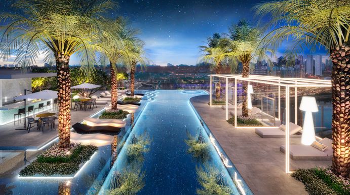 O lazer do Mandarim The Legend é completo e exclusivo. O empreendimento conta com ambientes diferenciados, como Outdoor Party Lounge, Library, Gourmet Lounge, academia equipada, Spa com sauna e um espaço wellness para equilíbrio e relaxamento. As crianças têm diversão garantida no kid’s place, brinquedoteca e playground. Já no rooftop, a experiência é incomparável: Sky Bridge, solarium, piscina de borda infinita com raia de 25m, water spa, pool bar e até quadra de beach tennis.