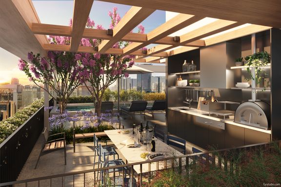 O lazer é uma extensão do estilo sofisticado do empreendimento, com lounge elegante, academia completa, sky bar com vista deslumbrante, piscina, solarium, lojas e espaço gourmet que traduzem o verdadeiro conceito de exclusividade.
