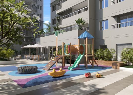 No lazer, você vive como em um verdadeiro clube. São diversas opções para todas as idades e momentos: hall social moderno, espaço influencer, salão de jogos, salão de festas, área gourmet, brinquedoteca, espaço bem-estar, piscina, sport bar, churrasqueira, playground, quadra poliesportiva, boulevard, atelier e academia completa.
