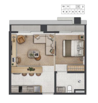 Os apartamentos studio de 40m² foram criados para quem valoriza o essencial sem abrir mão da sofisticação. Cada detalhe foi pensado para oferecer conforto, exclusividade e praticidade — com 1 dormitório, 1 banheiro, varanda, closet e infraestrutura completa para ar-condicionado.